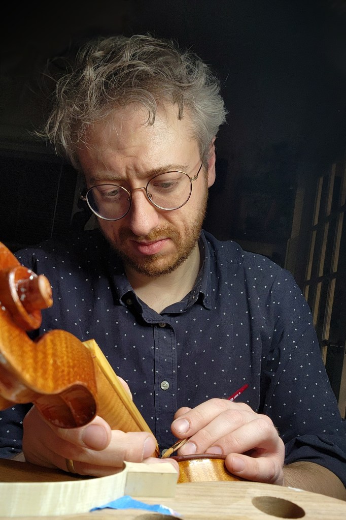 Inspired by his teachers’ uncompromisingly artistic approach to the craft, Fiacha sees in making violins a contribution to net beauty in the world, and ultimately an answer to Aristotle’s fundamental question “What makes a good life?” His instruments are tailored toward musicians with equally uncompromising taste and are available through fine violin dealers across the country or directly from the maker. When not building the next one from his home studio, he can be found at William Harris Lee & Co., where he specializes in new making and varnish work.